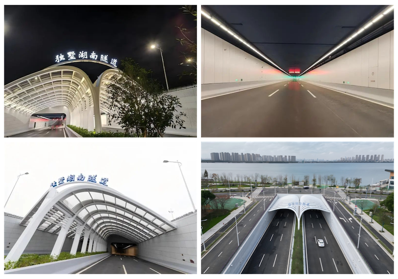 The Second Passage of Dushu Lake (Dushu Hunan Tunnel) is an important component of the "Eight Horizontals" transportation framework system planned and formed in Suzhou City. The project crosses the southern part of Suzhou Dushu Lake, connecting the administrative divisions of Wuzhong District and the Industrial Park. It is connected to Dongfang Avenue to the west and passes through Suzhou Shenwai Port, Dushu Island, Dushu Lake, and Wanshou Street in the form of a tunnel to the east before connecting to Chuangyuan Road. The project has a total length of 3.93 kilometers and adopts the standard of urban main roads. The main line is designed with a speed of 50 km/h. It is China's first underwater navigation canal shaped double layered tunnel, integrating "bridge, island, tunnel, and underwater ramp".