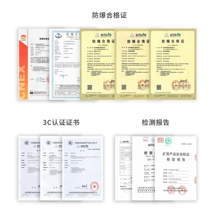 Changzhou Mingjing intelligent energy explosion-proof product series of the subsidiary of ZhongAnke has passed a number of explosion-proof testing certification, and obtained the corresponding explosion-proof certificate, coal safety certificate, this safety certificate, etc. It is suitable for environmental places containing coal dust and methane explosion mixture, such as: underground coal mine, mine, tunnel, oil, natural gas, subway, etc.