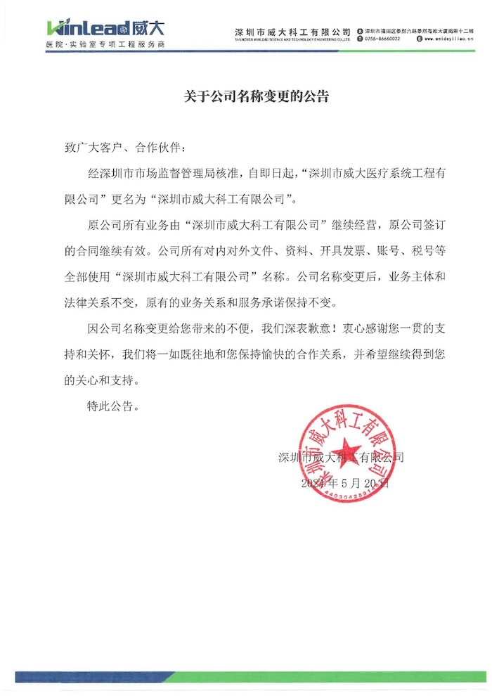 Due to the strategic development and brand building needs of Shenzhen Weida Medical System Engineering Co., Ltd., a subsidiary of ZhongAnke, it was officially renamed as "Shenzhen Weida Science and Engineering Co., Ltd." from now on.