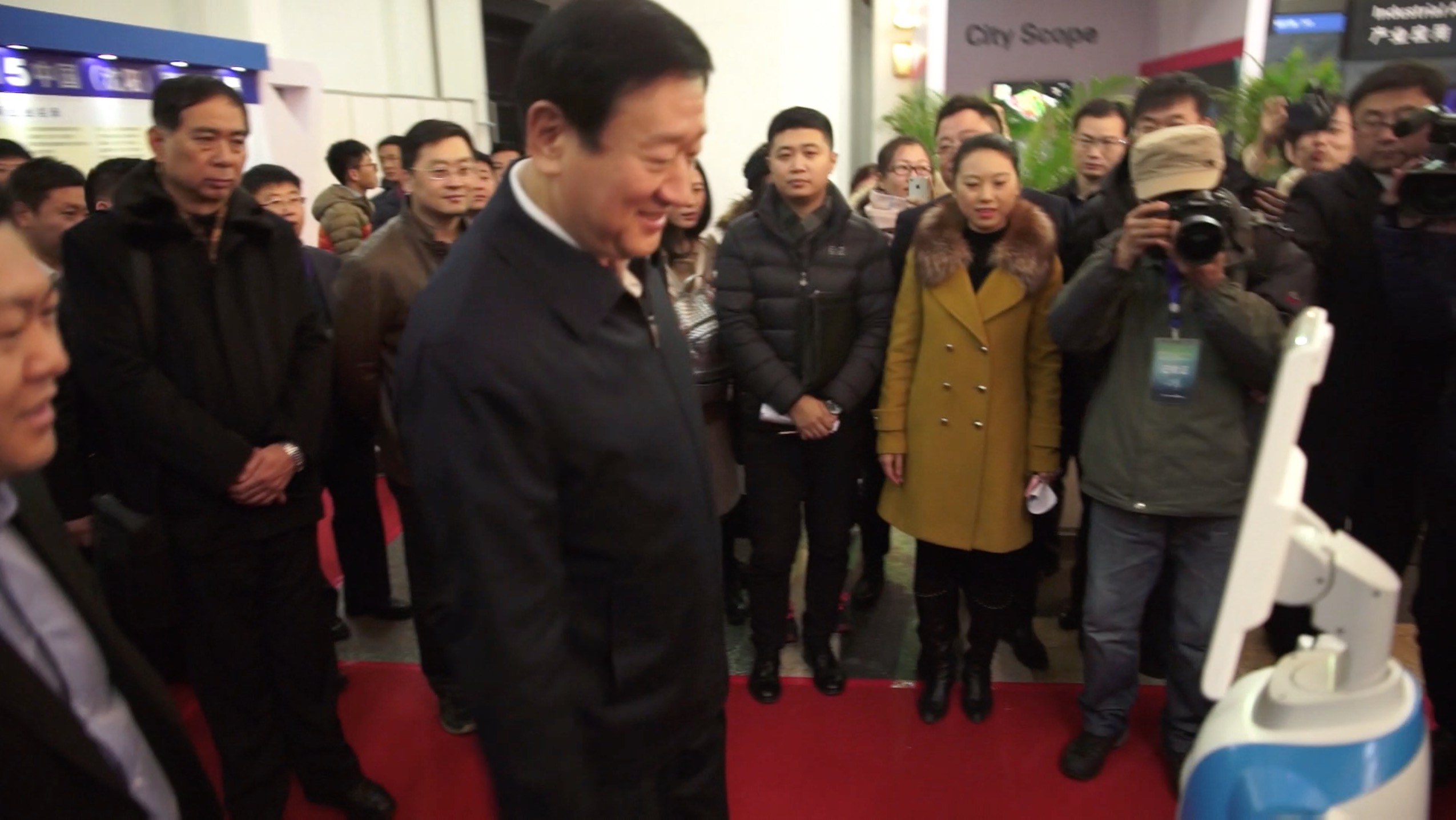沈陽市市長潘利國與中安消智能服務型“替身”機器人互動