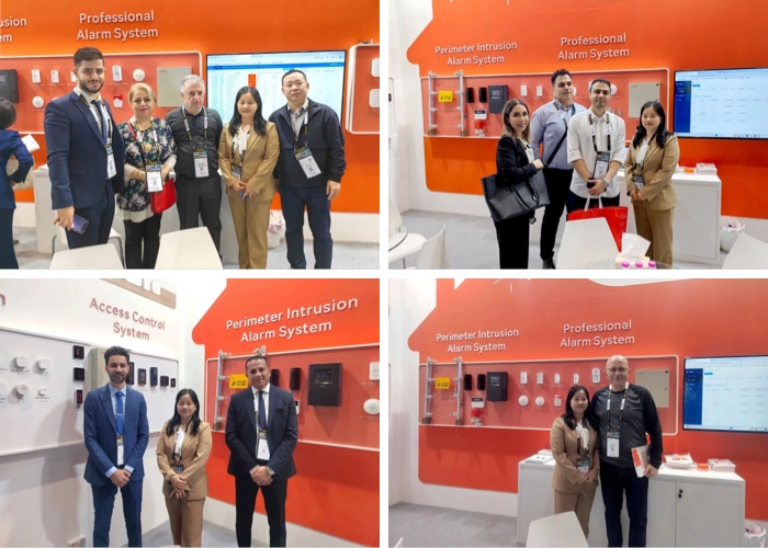 豪恩展臺在迪拜國際會展中心SA-L41展位,現場展示了4G家庭安全系統、智能家居傳感器系統、專業安防報警系統、周界入侵報警系統、門禁控制系統等五大系統。