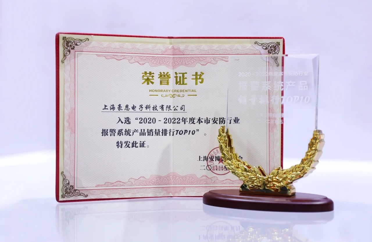 與此同時,在5月17日下午,第二十屆上海安博會答謝晚宴暨優秀安防企業頒獎典禮在上海綠地萬豪大酒店舉行,豪恩一舉斬獲了“2020-2022年度本市安防行業報警系統產品銷量排行TOP10”行業大獎。憑借其在安全領域的解決方案及創新產品,豪恩用成績和銷量證明了其品牌的凝聚力與創新力。