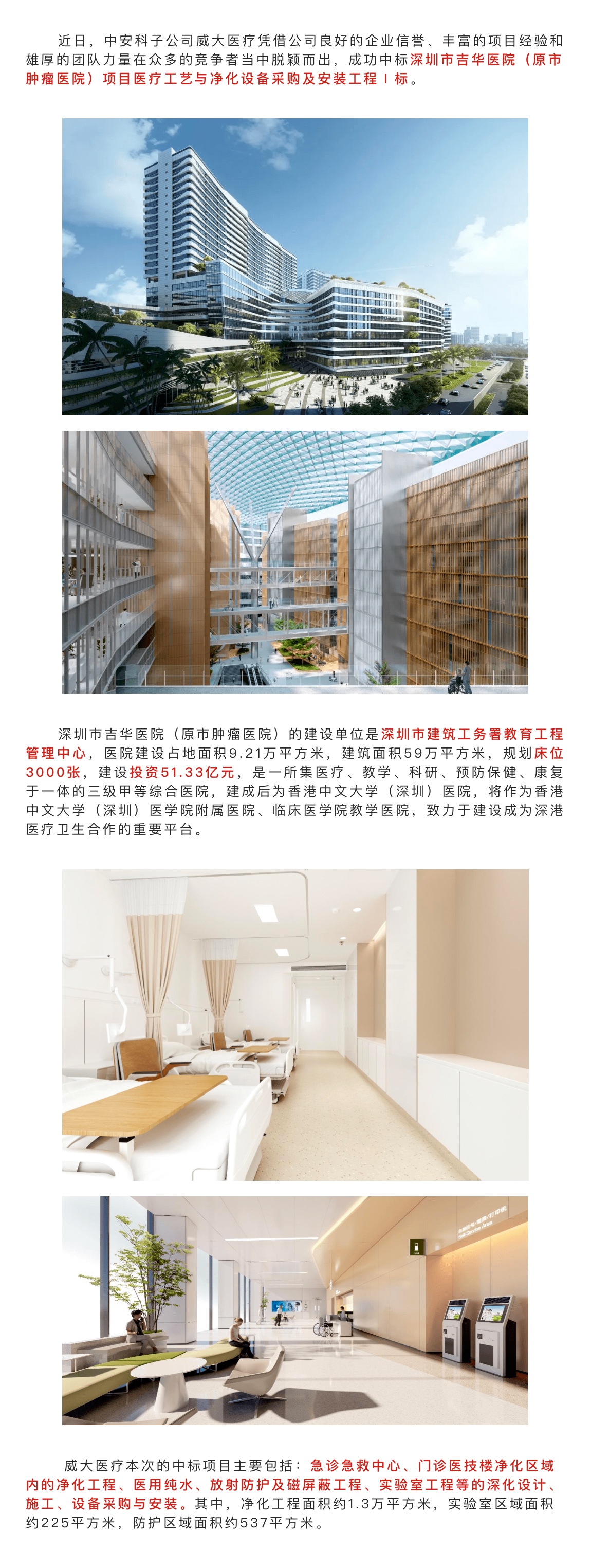 中標喜報|中安科子公司威大醫療成功中標深圳市吉華醫院項目