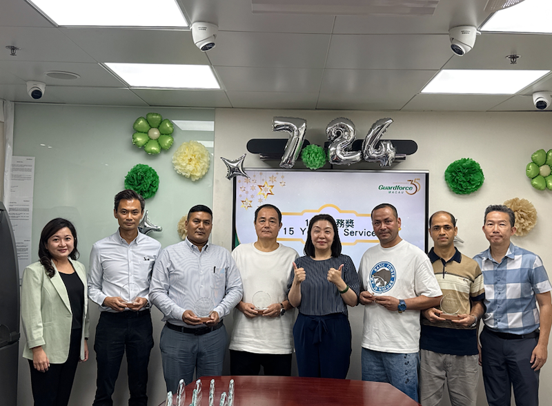 澳門衛安為安保人員精心準備紀念禮品,并隆重舉行長期服務獎項頒發儀式。每年7月24日,澳門衛安都通過這一傳統,向默默守護社區安全的保安同仁表達崇高敬意。今年,公司再次以此感謝安保人員無畏挑戰、堅守崗位,用專業和責任守護大家的日常生活。這份敬意與感激,不僅是對其工作的肯定,更是對其無私奉獻精神的頌揚。