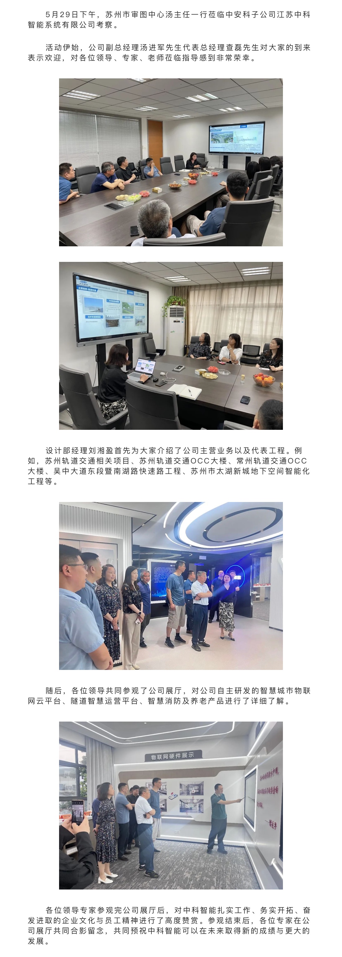 蘇州市審圖中心湯主任一行蒞臨中安科子公司江蘇中科智能系統有限公司考察