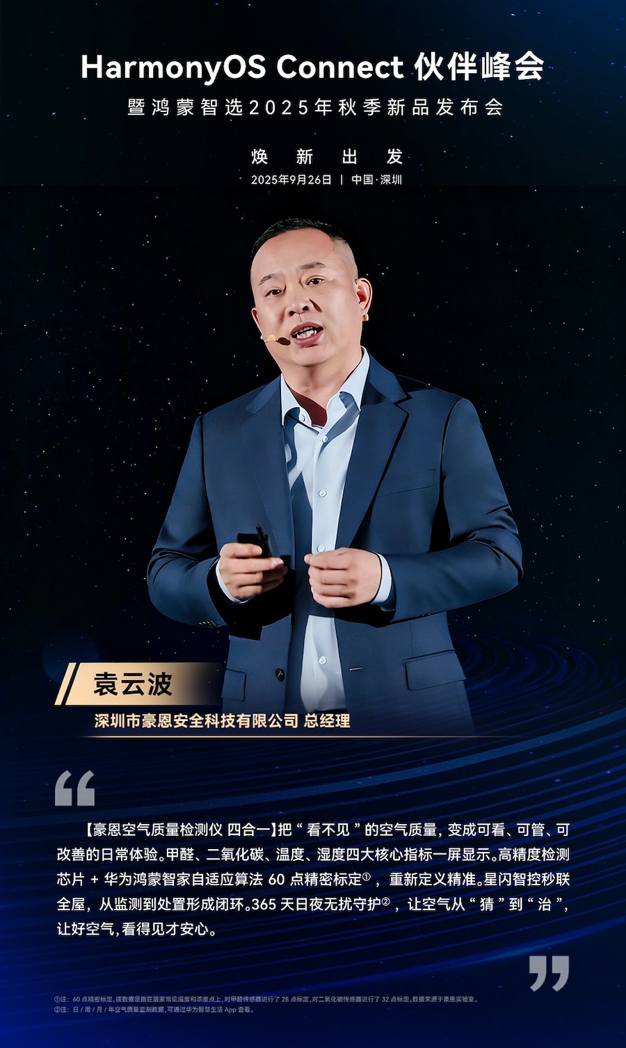 隨著公眾對健康生活與智能家居的關注不斷提升,空氣質量監測類產品正逐漸成為智慧家庭的重要組成部分。豪恩與鴻蒙智選的深度合作,代表著行業對空氣健康管理的重視,也標志著豪恩在智能家居生態中的全新突破。