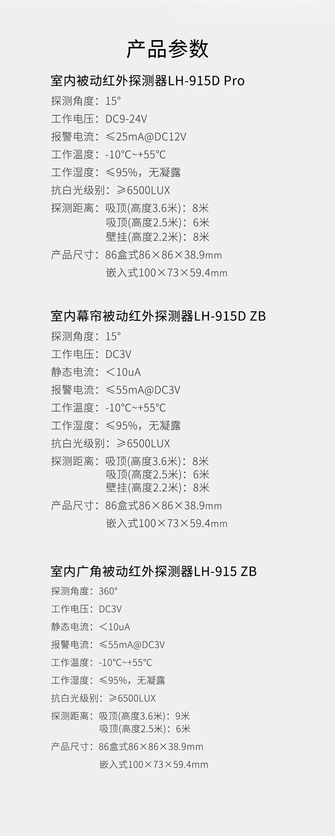 豪恩安防室內被動紅外探測器 LH-915 系列