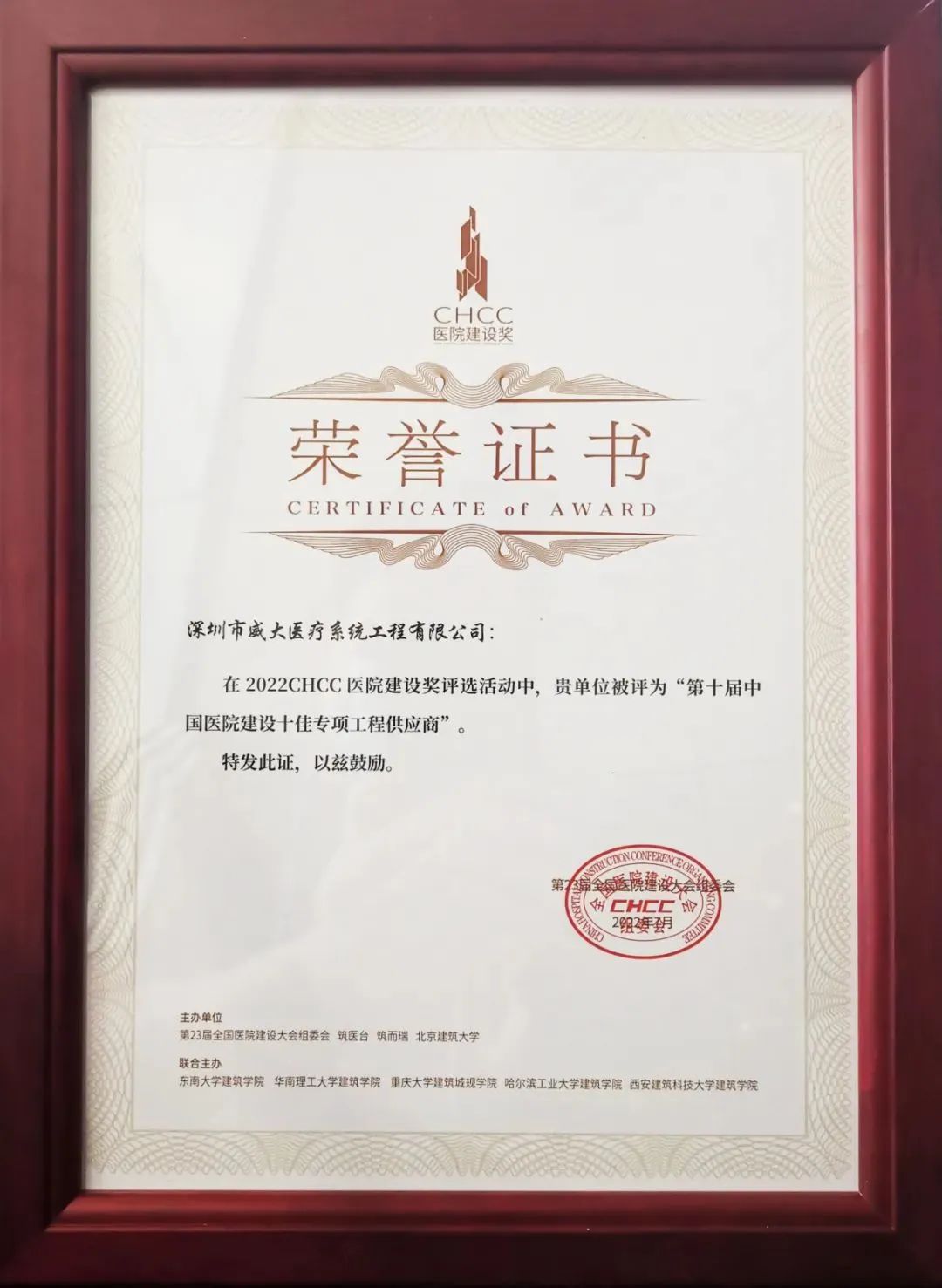榮譽代表過去,未來威大醫療將繼續以客戶為中心,通過更優質的專業服務,為客戶打造一流的精品工程。
