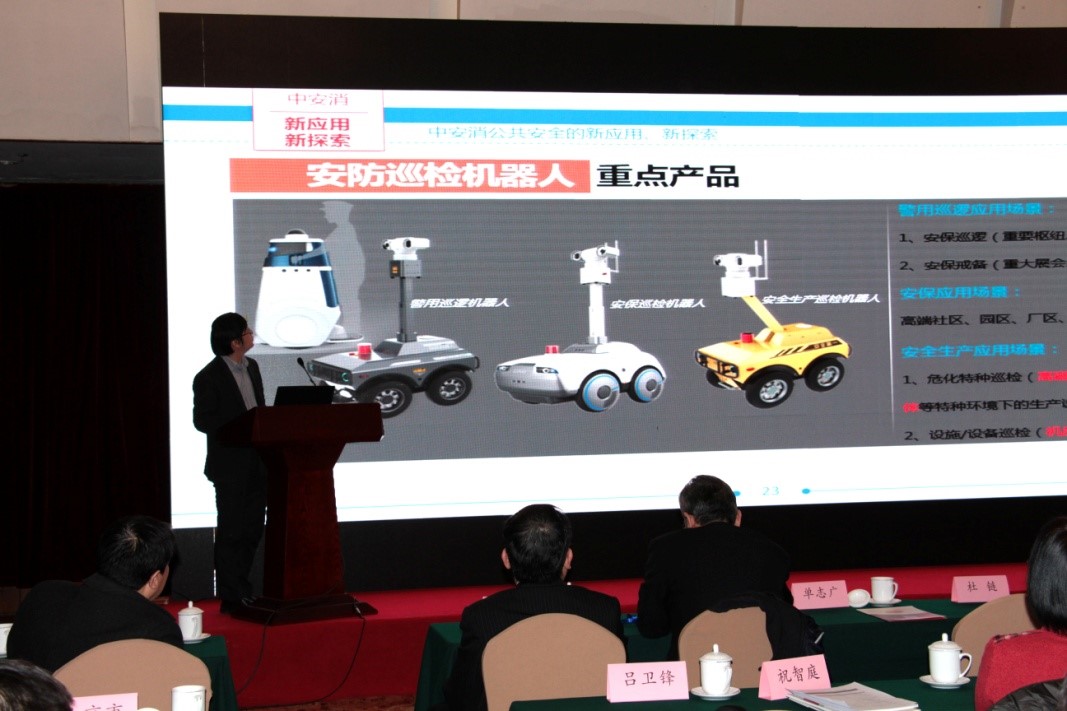 徐濤先生以“公共安全的大數(shù)據(jù)變革”為報(bào)告主題,闡述了中安消在智慧城市、智慧社區(qū)、平安城市、安防等重大領(lǐng)域的優(yōu)秀解決方案,在報(bào)告中,徐濤先生重點(diǎn)介紹了中安消技術(shù)在行業(yè)內(nèi)率先探索應(yīng)用的智能安防機(jī)器人。安防巡檢機(jī)器人在大安防領(lǐng)域的新應(yīng)用,有效彌補(bǔ)傳統(tǒng)安防的諸多弊端,吸引了現(xiàn)場(chǎng)與會(huì)嘉賓的熱切關(guān)注。