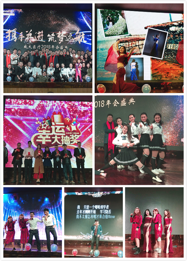 從圖片集錦可以看到,深圳威大醫療系統工程有限公司真是一家朝氣蓬勃、充滿活力的公司,正好響應了本次年會主題-“新征程,大未來”。年會現場亮點多多,“辣眼睛”男扮女裝、追趕潮流的嘻哈說唱、婀娜多姿的異域風情、青春靚麗的少女時代。深圳威大在2018踏上全新征程,必將有不凡未來!