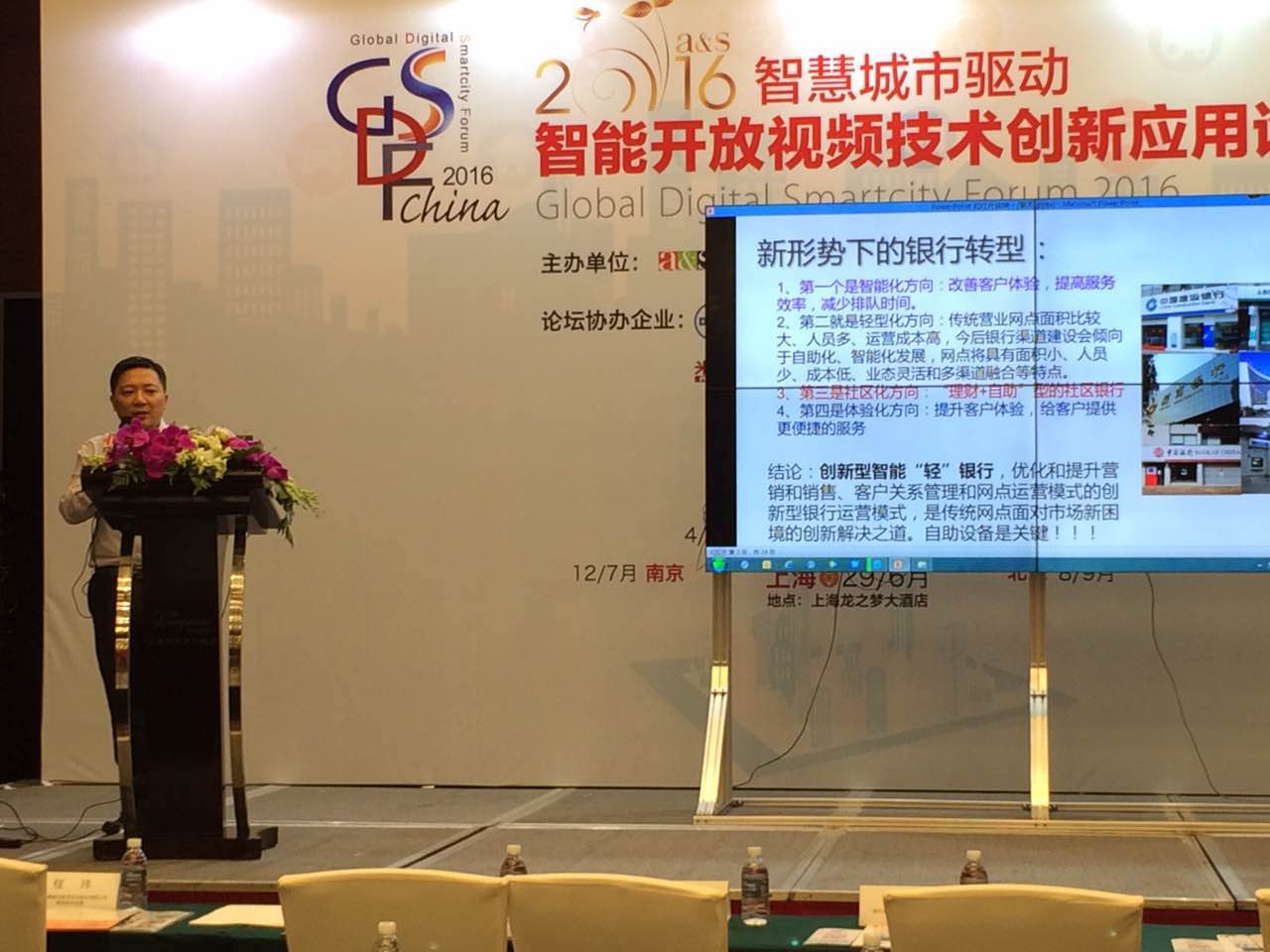 上海擎天總經理張佳捷先生就“物聯網在智慧金融中的應用”進行了主題分享。張佳捷先生認為,在互聯網、物聯網、大數據技術快速發展的時代,金融業智慧化已是必然之路,智慧金融能極大地提高服務效率,降低日益上升的人力成本。
