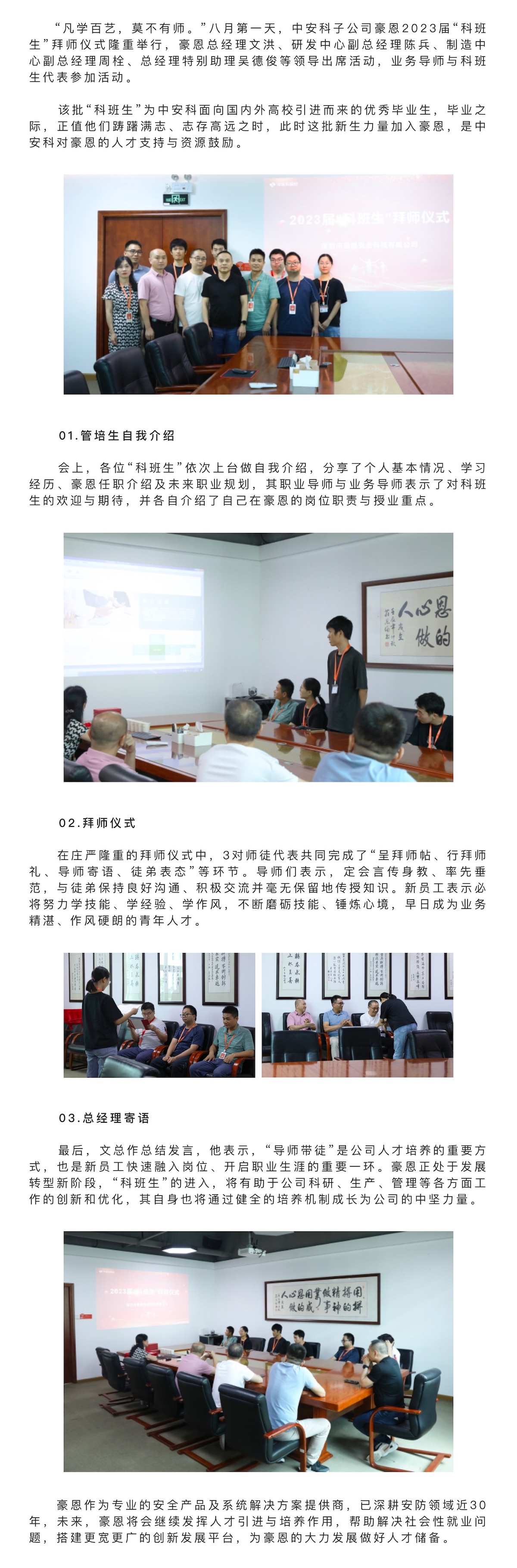 中安科子公司豪恩隆重舉行2023屆“科班生”拜師儀式