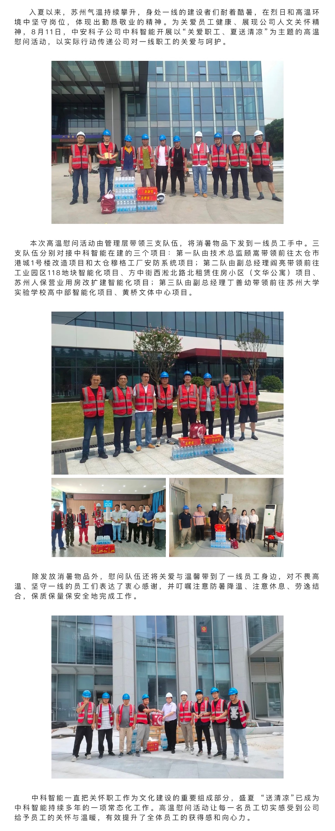 情系一線“送清涼” | 中安科子公司中科智能開展高溫慰問活動
