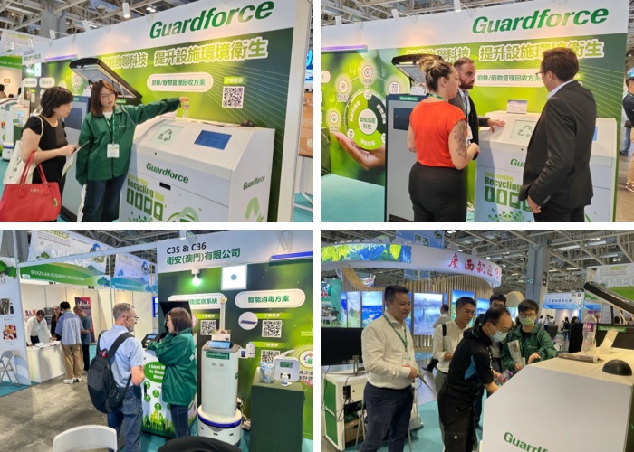 近日,2023年澳門國際環保合作發展論壇及展覽(2023 MIECF)圓滿結束。中安科子公司澳門衛安(Guardforce)與多位國際環保精英互相交流,并為公眾介紹多個智能環衛方案,包括智能垃圾箱、智能廚余回收箱、自動分類回收箱、UVC LED消毒燈、智能消毒機器人、智能空氣消毒機及智能環衛監察系統等等。