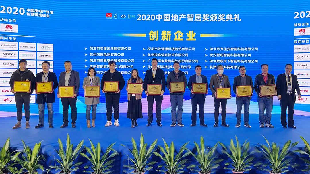 12 月 22 日,“2020 中國房地產開發智慧科技峰會 — 2020 中國地產智居獎頒獎典禮”在廣州保利世貿博覽館頒布隆重舉行,經嚴格篩選,iHORN 豪恩以強大的企業綜合實力,從眾多參賽企業中脫穎而出,摘得“2020 中國地產智居獎-創新企業”殊榮。